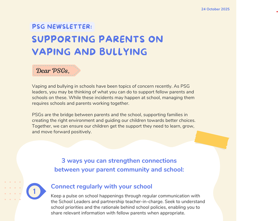 24 October 2025: PSG Newsletter: Supporting Parents on Vaping and Bullying |